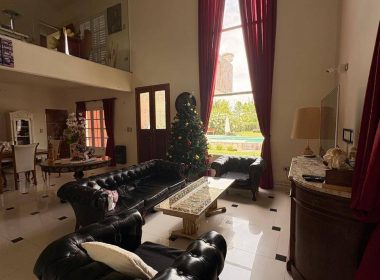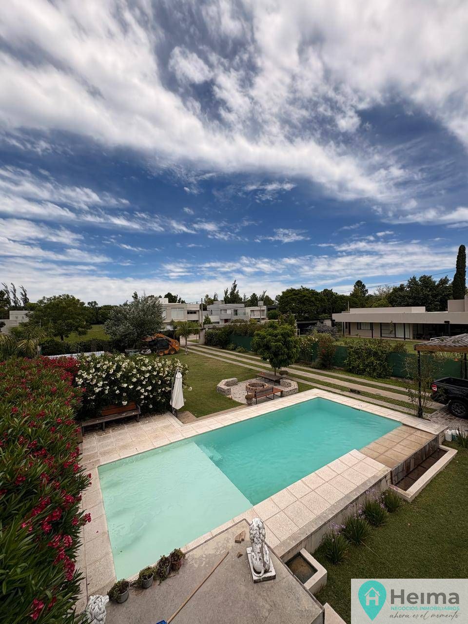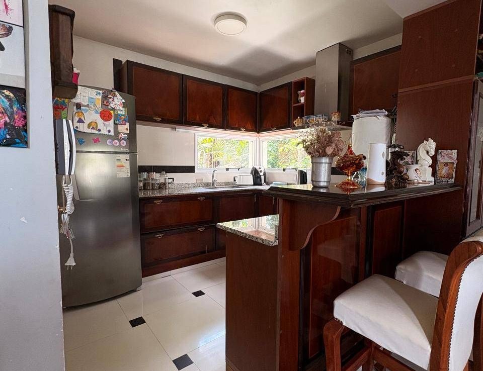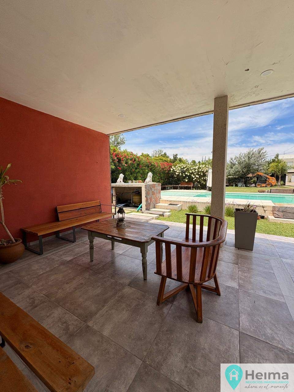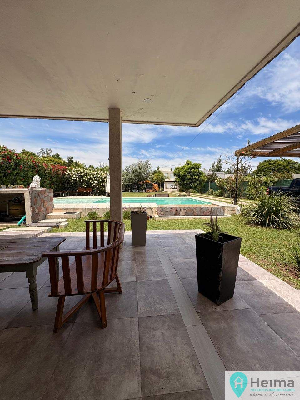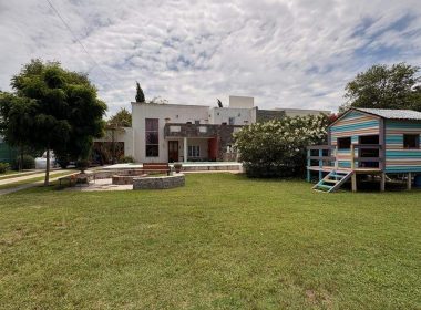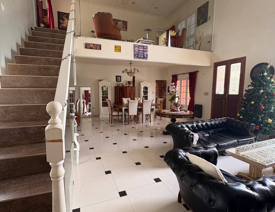 El exterior de la casa es un verdadero oasis, con un hermoso jardín que rodea la piscina, creando el espacio perfecto para el esparcimiento y la diversión en familia. Además, la propiedad está equipada con aire acondicionado, agua corriente y posee un portón automático para mayor seguridad. Los espacios de estacionamiento son amplios, con capacidad para 2 vehículos en cocheras semicubiertas y estacionamiento para visitantes. La dependencia de servicio, el lavadero y la parrilla complementan la funcionalidad de este hogar, ofreciendo todo lo necesario para una vida plena y confortable.