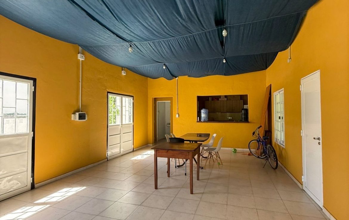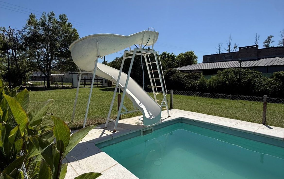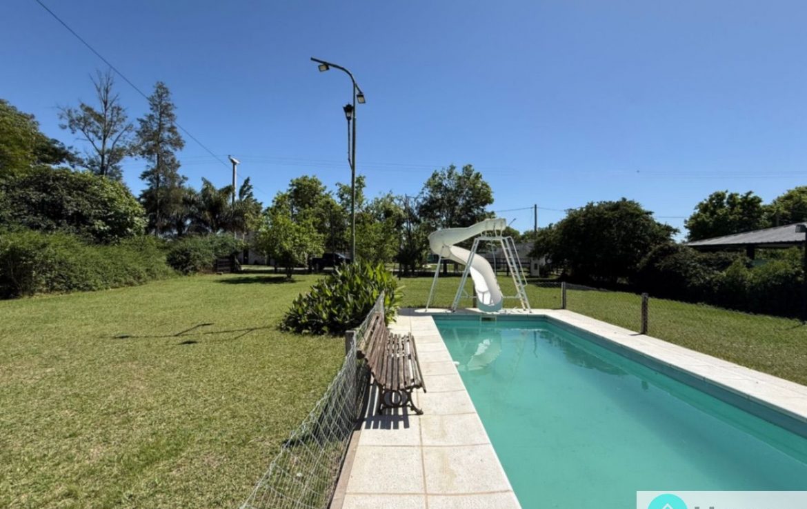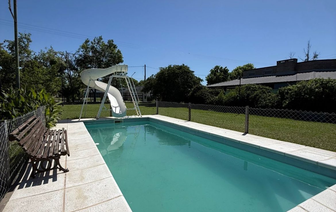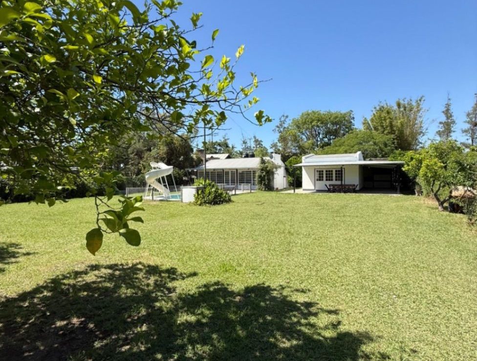 La propiedad se desarrolla en 2 construcciones cada una de ellas ubicada en un lote. La primera cuenta con un quincho cerrado, cocina separada por una barra, un baño y galería. La segunda se compone de un ambiente tipo living comedor, cocina, dormitorio y un baño lo que la convierte en un espacio funcional y acogedor. Disfrute de momentos de esparcimiento en su amplio patio y refresque sus días calurosos en la piscina que es la principal protagonista del jardín.