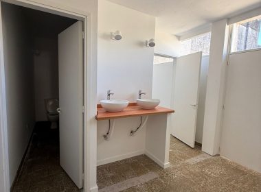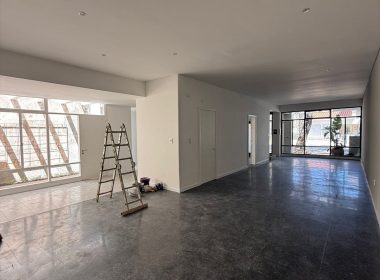 Con dos salones en planta baja que se unen en la parte de atrás, más una oficina de gran tamaño y dos baños comerciales con ante baño en el fondo del local.