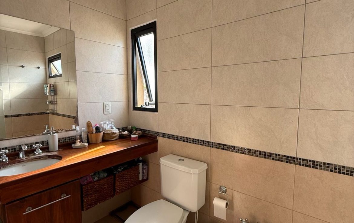 Entre sus características más atractivas, se destacan un acogedor living, un comedor y un desayunador, todos iluminados por la luz natural. La propiedad cuenta además con un lavadero y un espacio de escritorio, ideal para trabajar desde casa. El patio es perfecto para reuniones al aire libre, complementado con una parrilla que invita a disfrutar de asados con amigos y familiares. La cochera semicubierta garantiza la comodidad de estacionamiento, mientras que los servicios de agua corriente, luz, desagüe cloacal y calefacción aseguran un hogar cálido y funcional durante todo el año.